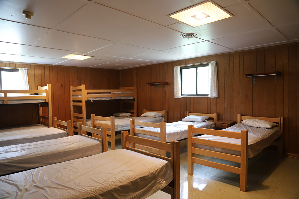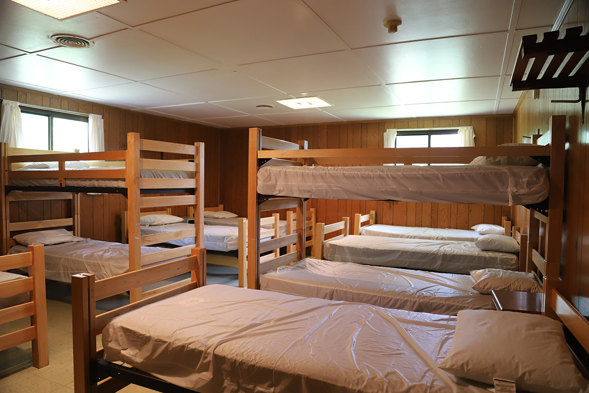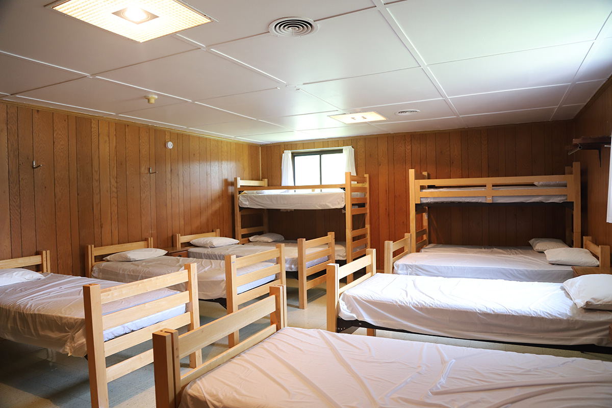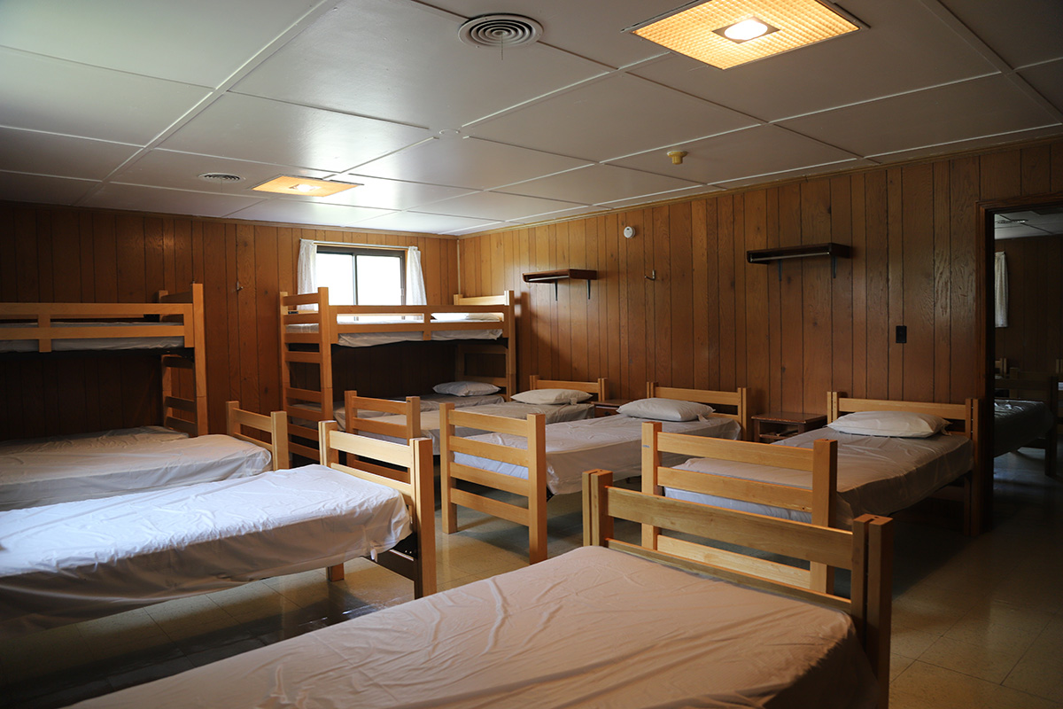 Each dorm room includes 10 beds, a pillow for each guest, and access to shared bathroom facilities. Guests are asked to bring their own sheets, towels, washcloths, blankets, and soap.