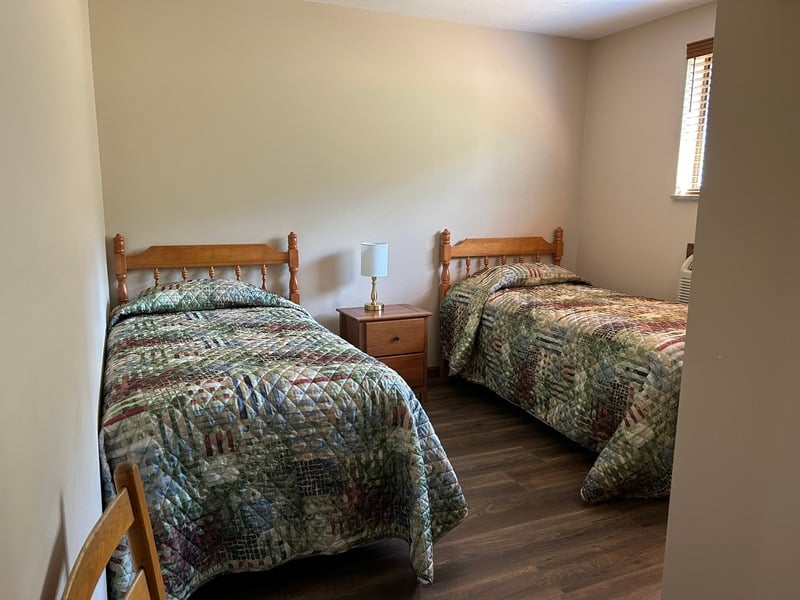 The upgrades continue in the bedrooms, where guests will find new bedding, stylish furniture, and beautifully renovated bathrooms with custom tile work. One room includes a wheelchair-accessible walk-in shower and a double bed for added comfort.