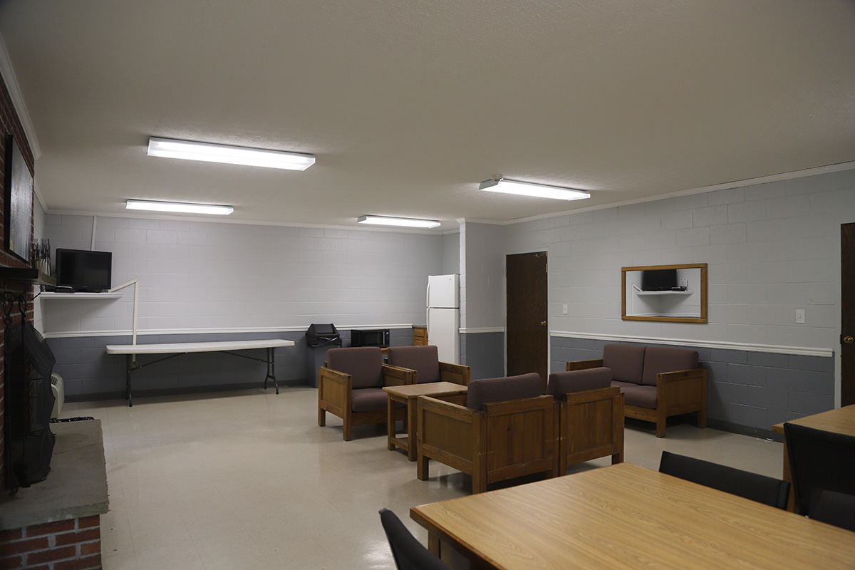• Mountaineer Lounge area for gatherings, featuring a refrigerator, microwave, and sink.
