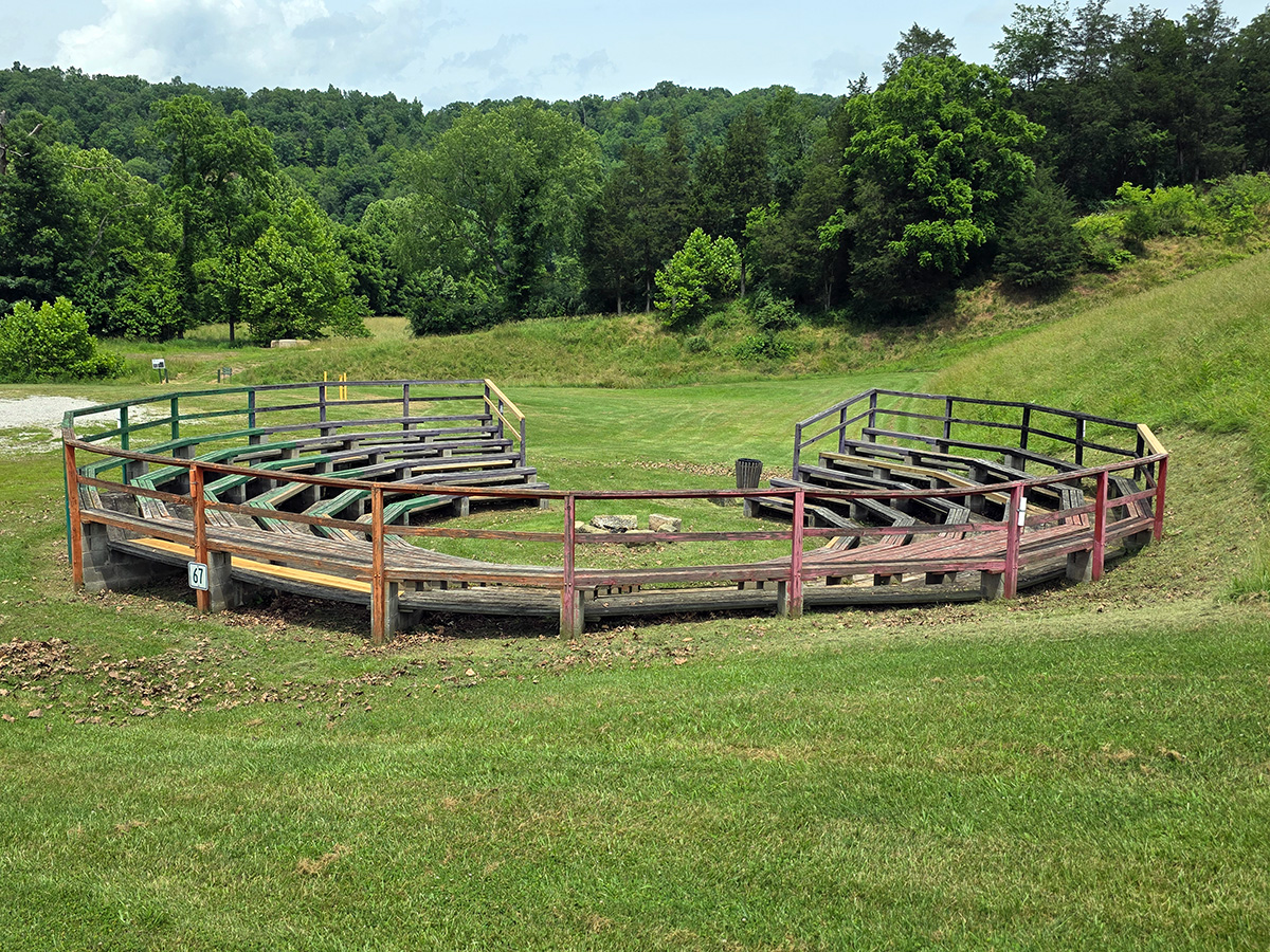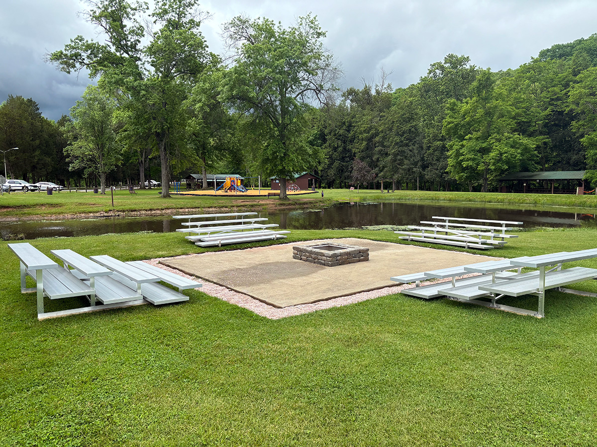Medium-sized groups will love the Covered Bridge Campfire, recently renovated to include sturdy new metal bleachers and a concrete pad, creating a comfortable and inviting atmosphere for up to 150 people. The picturesque setting near the Covered Bridge adds a rustic charm that enhances any gathering.