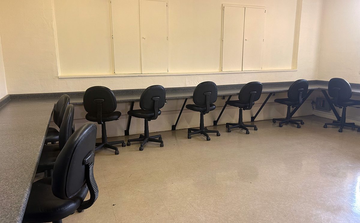 Located opposite Studio A, the Weaving Room shares the same dimensions (37’ x 20’) and features floor-to-ceiling storage with a back countertop. This room is frequently used for quilting and craft groups, offering ample space for displays or extra storage. The adjoining patio provides access to the lake and breathtaking views.