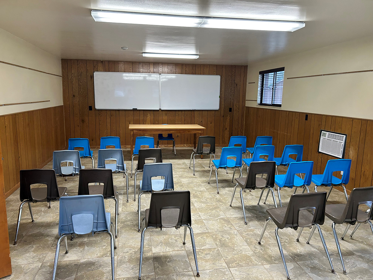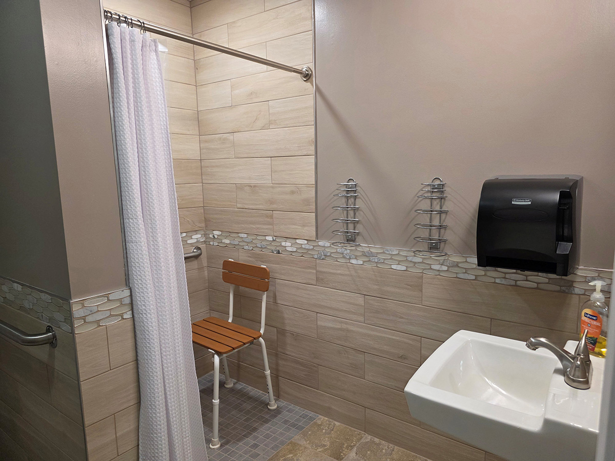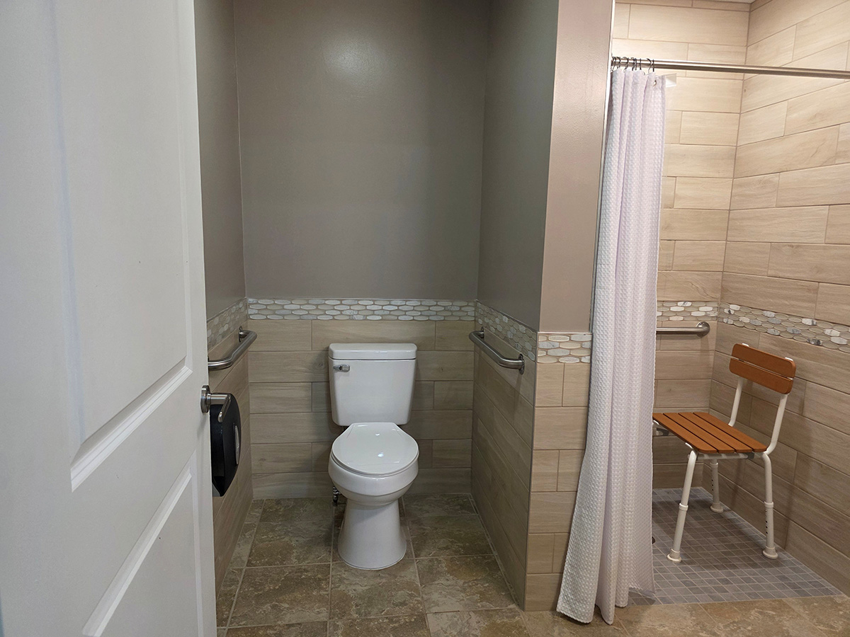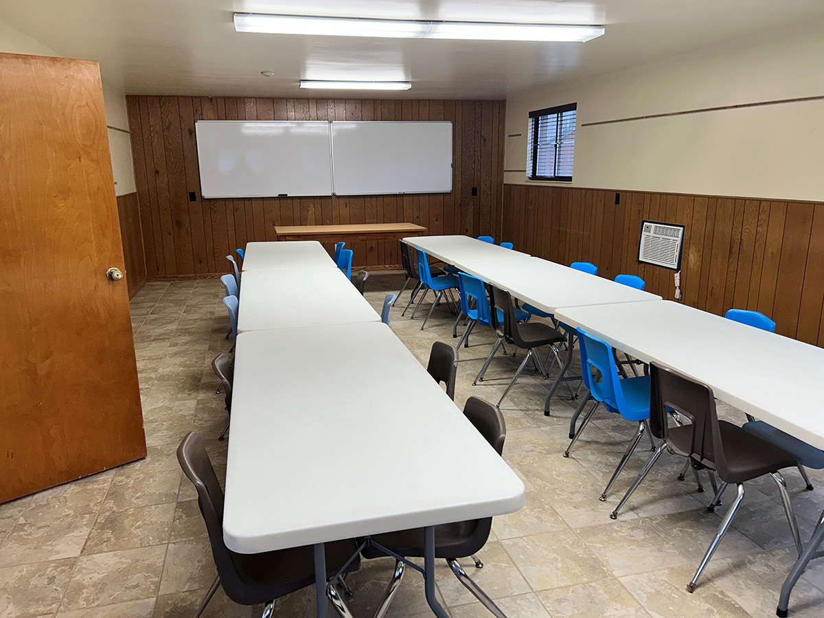 The FHA building not only hosts dormitory rooms, but it also provides three additional meeting spaces, a separate ADA-compliant bathroom, and kitchenette. The kitchenette was added in 2024 and adds value to this space, creating a serving area for the group’s prepared food. The ADA-compliant bathroom was also added in 2024 and transforms this space into an accessible area for groups with special needs.