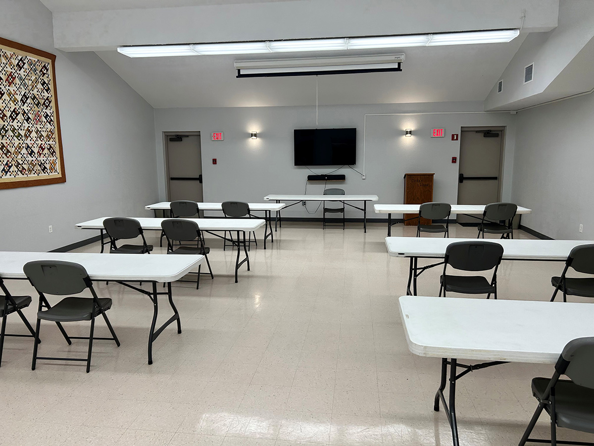 Located adjacent to Holt Lodge, this meeting room offers unmatched convenience and accessibility for group events. Equipped with a kitchenette featuring a refrigerator, microwave, sink, and ample counter space, it’s an ideal space for groups bringing their own prepared food. Popular among family reunions, quilting groups, and businesses, the room’s proximity to lodging makes it a practical choice for a variety of gatherings, especially those with ADA needs.